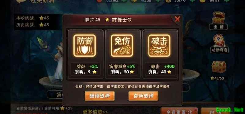每完成三层挑战将进入下一阶段,期间会弹出激励界面,消耗星星可获取属性提升,助你更轻松应对后续关卡。
