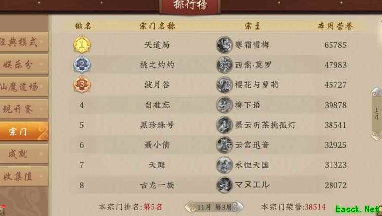 等级达标后务必加入宗门,优先选择排行榜前两页的宗门,每周可获得丰富奖励。