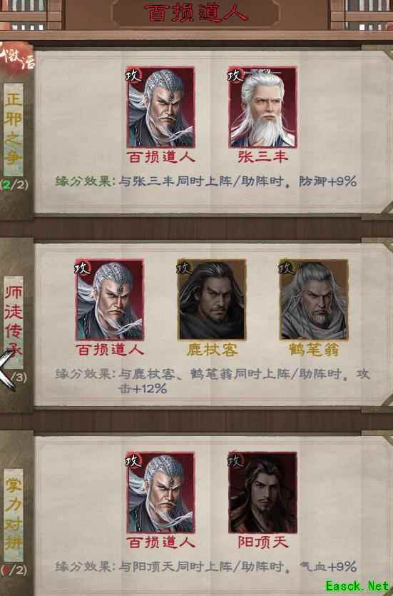 绝技可对敌方前排造成巨额伤害,且对处于异常状态的目标必定暴击;心法能在战斗首次受击时减伤50%。杨逍、阳顶天与百损道人搭配效果极佳。若觉命中不足,可上阵宠物猴子,提供25%封穴概率,后续再配合何足道,还能附加50%晕眩几率,控场能力大幅提升,阵容联动更为紧密,战斗力显著增强。