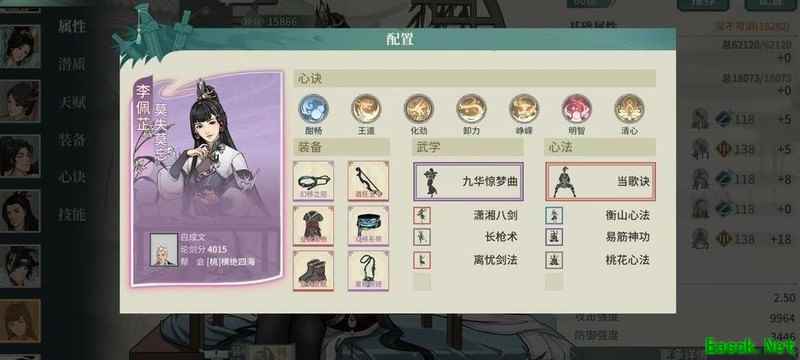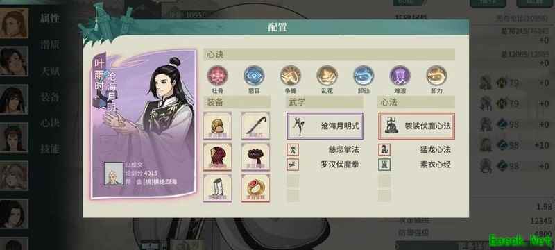 装备方面,镇海适合洗受击加盾属性,罗刹剑则主洗攻击附带多重封印效果,建议尽量将两项都洗满。反弹与脱臼所受伤害总和需达到100%。心法可将大漠替换为武当,搭配生生不息。主角的极参足以拉满,其余角色基本无需培养。