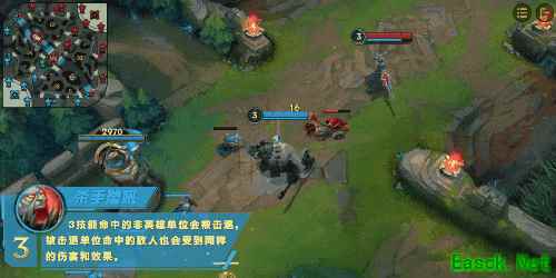 E(3)技能击中非英雄单位时将其击退,被击退单位碰撞到的敌人也会受到相同伤害与效果。