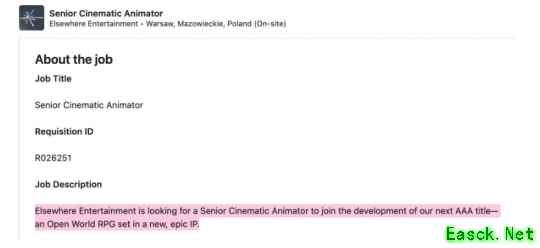 油管博主extas1s在他视频中爆料称,他是在动视旗下新成立的工作室Elsewhere Studio,其领英招聘信息中发现的。