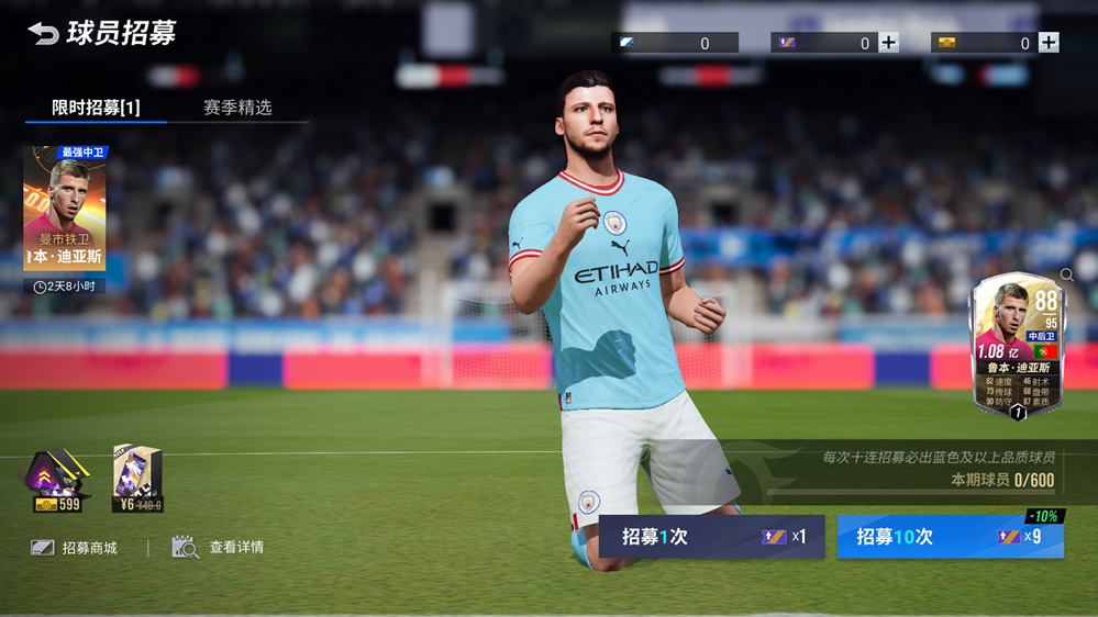 11月30日-12月6日,《绿茵信仰》开启「曼市铁卫」限定卡池,最多550次限时招募必得95潜力中后卫鲁本·迪亚斯,让您的后防线坚若磐石!