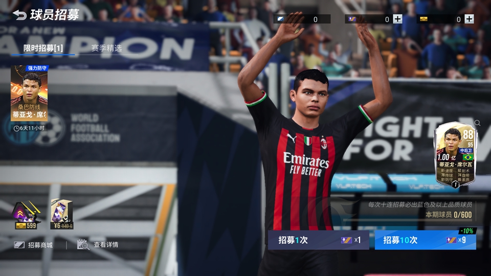 10月22日-10月28日,《绿茵信仰》开启「桑巴防线」限时卡池,最多550抽,经理必得95潜力传奇蒂亚戈·席尔瓦,让您领略“世一卫”的传奇魅力!游戏内同步开启蒂亚戈·席尔瓦培养活动,完成指定培养任务可获得「蒂亚戈·席尔瓦-红黑军团」赛季时刻及大量道具奖励。