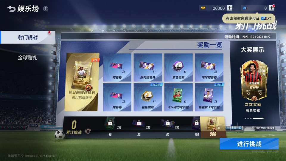射门挑战,全新奖励!10月21日-10月27日,《绿茵信仰》新一期射门挑战开启,本期大奖如下: