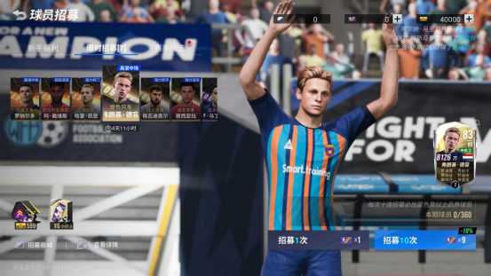 10月14日-10月20日,最多360次(原400次)限时招募,经理们就可携手全能中场德容一起驰骋绿茵。
