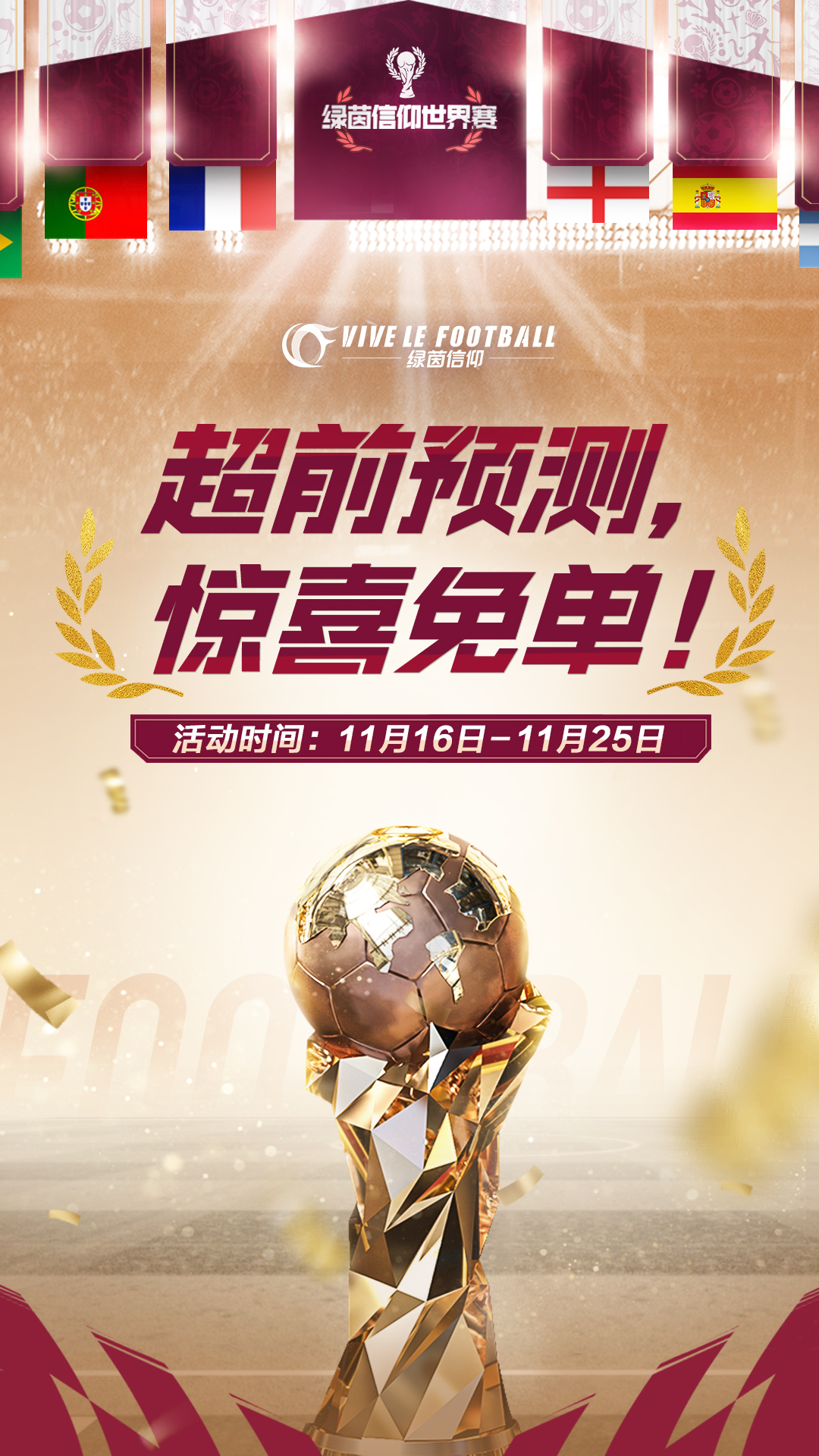 当全世界球迷的目光都聚焦卡塔尔,属于球坛的巅峰之战即将打响,谁会在这次强者如云的对决中笑到最后呢?《绿茵信仰》决胜卡塔尔版本,特别推出【冠军助威活动】,大家可为巴西、阿根廷、葡萄牙、法国、西班牙、英格兰购买助威礼包。如果你看好的国家队最终于卡塔尔夺冠,将马上全额返还购买助威礼包所支付的点券。你相信自己的锐利的眼光吗?你心中的冠军又是哪一只强队?不妨一起来预测一波,用你的神预测“薅”一把《绿茵信仰》的羊毛吧!