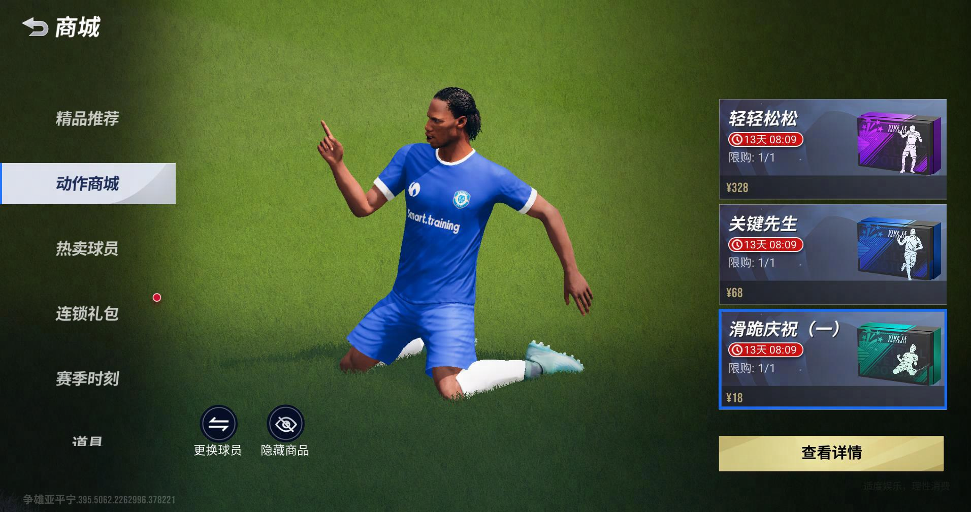 值得注意的是,庆祝动作还可为玩家球队阵容增加不菲的球队价值,首期庆祝动作将推出「经典滑跪」、「关键先生」、「轻轻松松」、「鸦雀无声」: