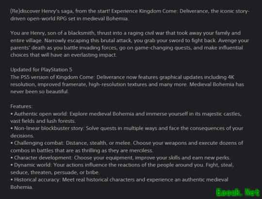 尽管战马工作室去年曾表示暂无计划回归初代作品,但现有迹象表明,《天国:拯救》的本世代主机强化版本可能即将发布。据Gematsu报道,该游戏在PlayStation商店的列表描述中已悄然更新,加入了?“已为PlayStation 5更新”?的说明。