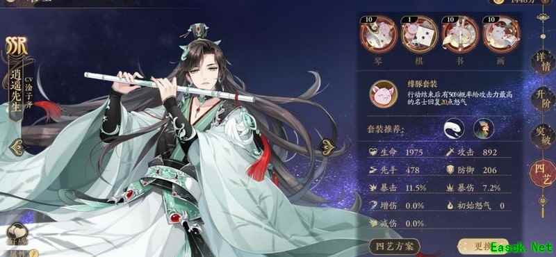 推荐此阵容因四艺成型简单,只需专注刷取猪猴并及时购入,强化效果随机但实用,无论偏肉或输出均可胜任,先手后手皆宜,角色需求低,主将选用小季即可,操作轻松,战斗体验畅快。