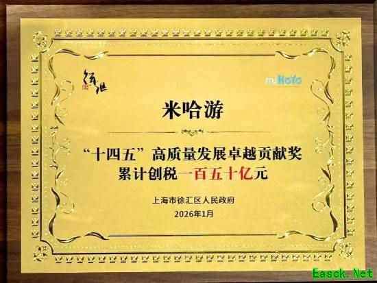 据游戏那点事今日报道,米哈游联合创始人刘伟(大伟哥)日前在朋友圈发文透露,米哈游已获得上海市徐汇区人民政府颁发的“十四五”高质量发展卓越贡献奖。