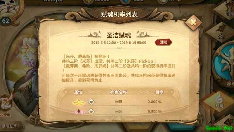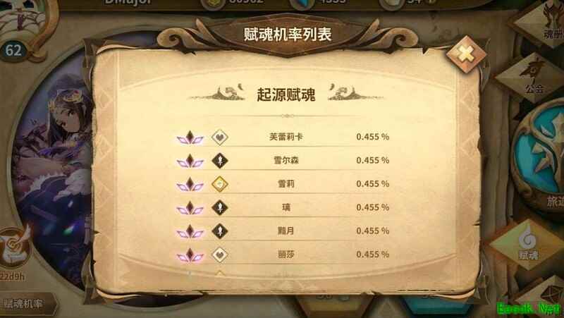 图中蓝阶角色赋魂概率2%,均为亚证角色,但抽出的蓝阶角色中也可能包含非证角色。