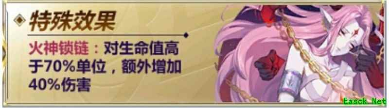 特殊效果:火神锁链可对生命值超过70%的目标额外造成40%伤害。