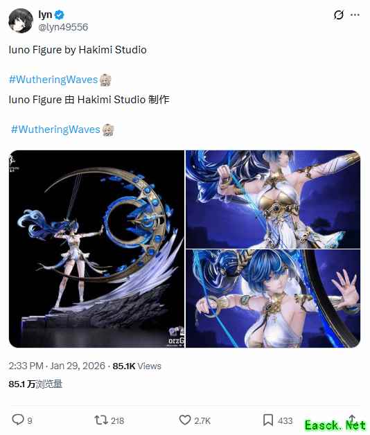 鸣潮尤诺新手办展示图外网分享!制作精美细节拉满