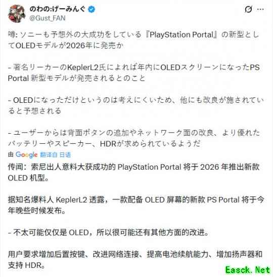 该爆料来自Neogaf论坛用户KeplerL2。在帖子中,Kepler首先提到PS6掌机将采用RDNA5架构,之后才谈到Portal。他接着表示,初代Portal “似乎很成功”,PlayStation正在研发“今年的另一款机型”。当被问及指的是哪个版本时,Kepler回答说:“OLED版本。”