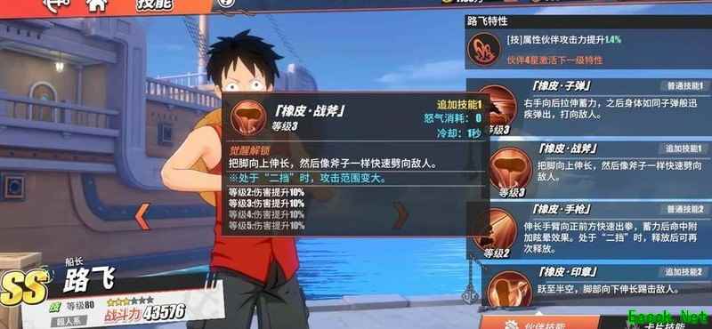 路飞的激斗技有两种:一种是蓄力后旋转腿部,蓄力时间长且范围大;另一种类似一技能的突进效果。建议优先选择突进型激斗技,操作更灵活,实战中更具优势。