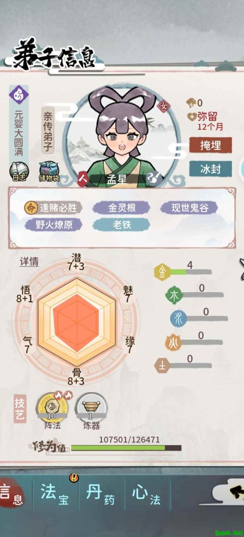 收徒时,炼丹、炼器、巧匠、制衣、阵法低于十点者一律不收。