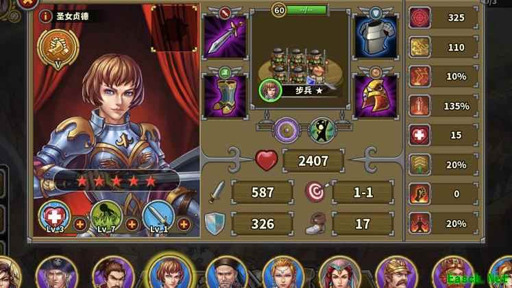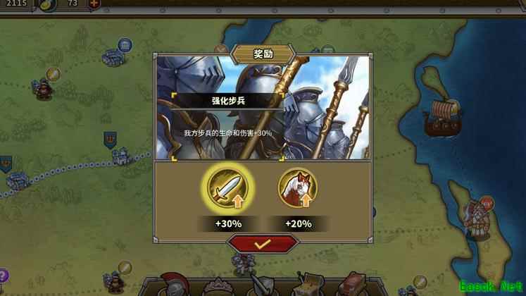 第五关运气好抽到增益,因无骑兵,只好强化步兵提升战力。
