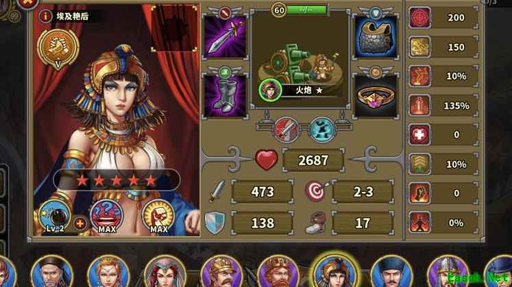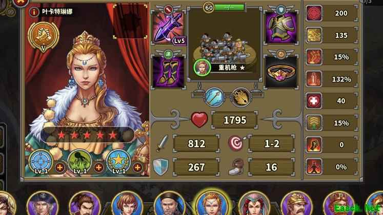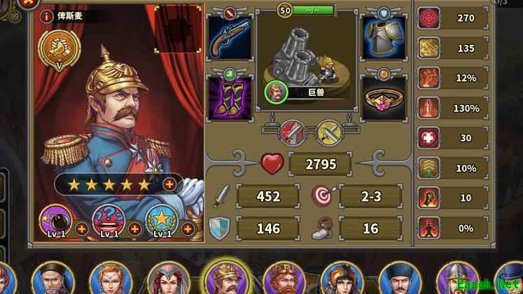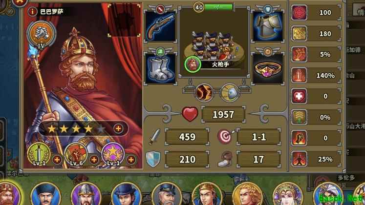 炮灰武将有多名,其中巴巴罗萨作为前期过渡角色,已培养至四星,领导力升至6级,其余均为未升星的金币武将,装备也全是金币品质。这些炮灰主要用于最终Boss关卡清理小兵,具体用法后文详述。