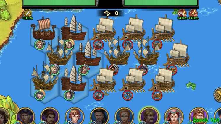 第六关为海战,敌方弓兵增伤40%,由纳尔逊与一名无名将领率领,其中纳尔逊威胁突出。建议以织田与其对位,并派叶卡参战,应对敌方大量弓炮单位。