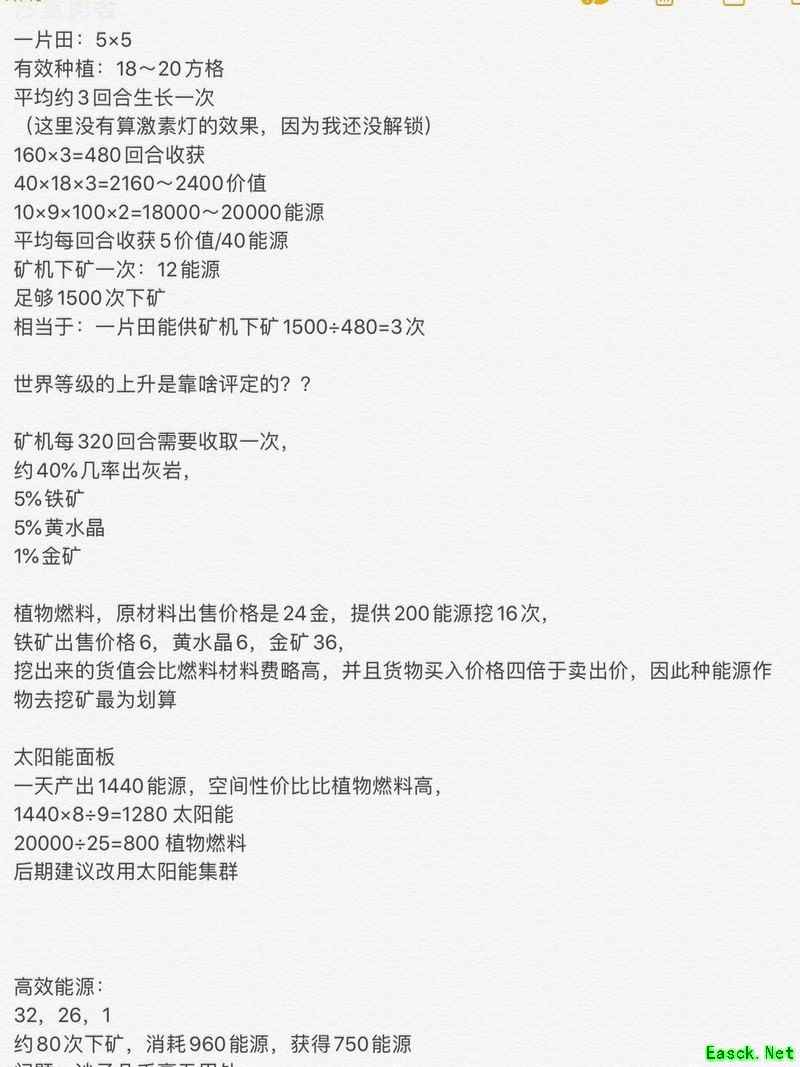 反复计算种田与矿机的投入产出比,权衡所需田地数量。