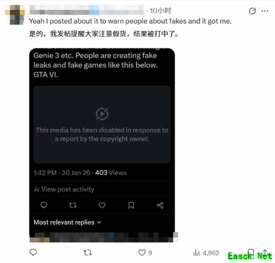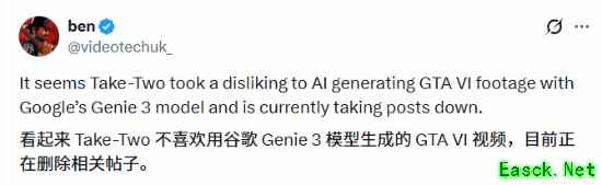 甚至连用作实例来提醒大家不要被AI《GTA6》视频骗的帖子都被下架了!