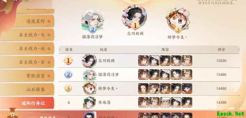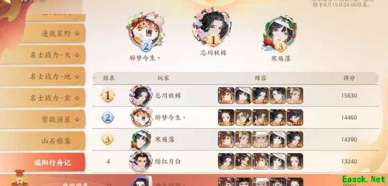 我在忘川风华区,竞争激烈,排行榜上尽是高练度大佬的强势阵容。