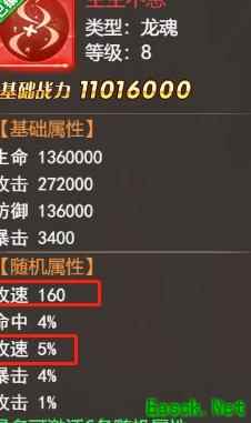 龙魂是提升攻击速度最有效的部位,若拥有+80或+160攻速,以及+5%攻速的属性,将显著提升输出频率。每件龙魂具备六个随机词条,同时具备+80和+5%攻速属性的龙魂最为理想。