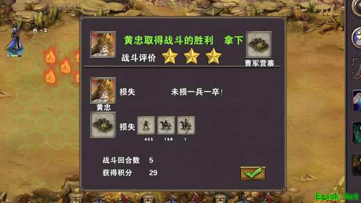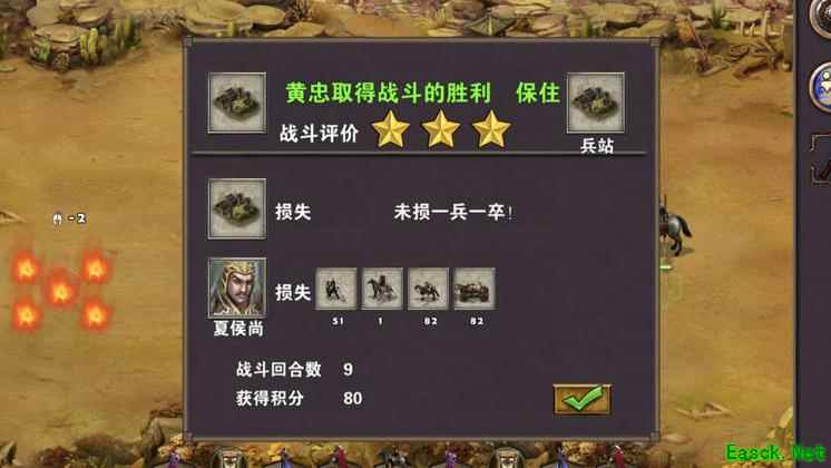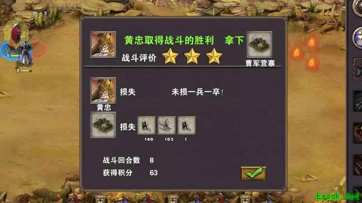 当全图资源据点均被占领后,待黄忠状态恢复至最佳,进攻右上角由杜袭镇守的曹军营地。善用法正的迷惑与暗噬技能,可轻松取胜。此后遍历地图清剿残余敌兵,积累资源,同时确保兵站每周正常征兵。第四周时,黄忠应率领两个兵站满编部队,将重骑兵进阶为西凉铁骑,迎战张郃。战斗中启用法正二技能持续回血,尽量减少兵力损耗。击败张郃后向左移动,途中利用包子与井水恢复状态,并分兵设诱饵,分散敌方火力。调整完毕后挑战夏侯渊,注意走位,使用黄忠一技能同时打击主将与小兵,快速清场,逐步消耗Boss血量直至击溃。若战斗失利,可退回当天重新尝试。最终战胜夏侯渊即可达成三星通关。若有碎金道具,首回合黄忠直冲城门攻击夏侯渊,碎金破防后迅速切入敌后输出,清兵高效;或使用副本专属装备吉祥猪破城亦可实现类似效果。