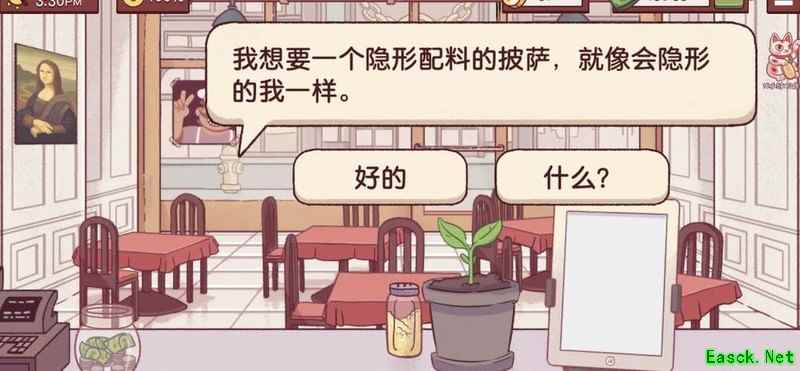 隐形人第二次到访时,要求获得完美的披萨,避免差评,如此第三次现身便会身着魔术师服饰。完成第三次挑战后,将解锁大开眼界成就,成功识破魔术师的真实身份。披萨的具体制作方法详见下文第五张图示,按步骤操作即可达成目标。