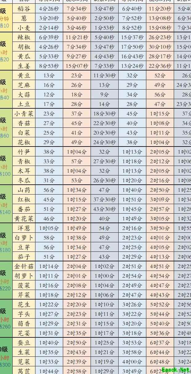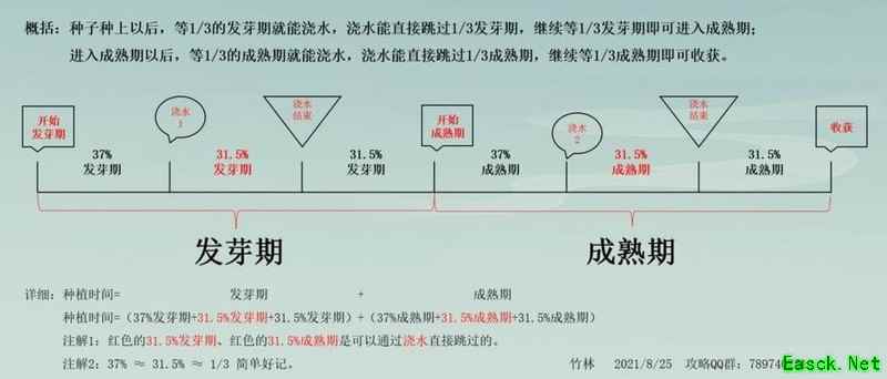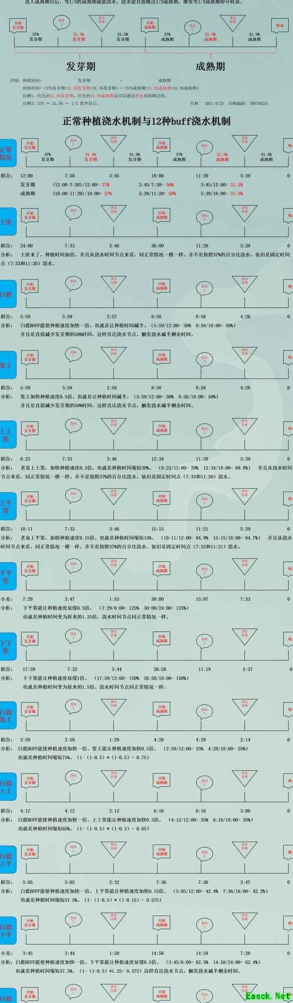 先看一张表格,百分比时间暂未换算为60进制,便于理解即可。文末将附上群友整理的更精确、更详细的种植时间表供参考。