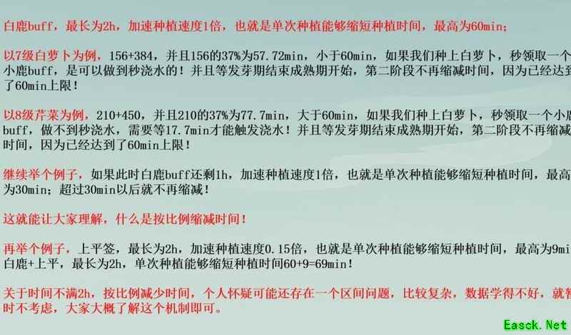 需要注意的是,在使用增益效果时,种植高级作物通常无法一轮完成,增益仅生效一次,且缩短的时间按单次最大持续时间计算。例如,白鹿增益为1小时,上上为18分钟,上平为9分钟。这一机制在后续的规划中将起到关键作用。