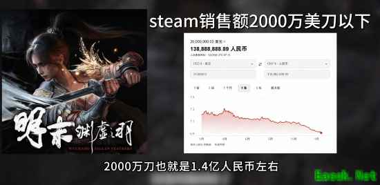 她援引海外分析机构gamediscover.co的估算,指出2025年Steam年度畅销榜前100名的最低收入门槛约为2000万美元。由于《明末》未进入前100名,其Steam年收入理论上应低于此数值(约合人民币1.4亿元)。按游戏标准版248元售价粗略推算,销量上限约为56.5万套。