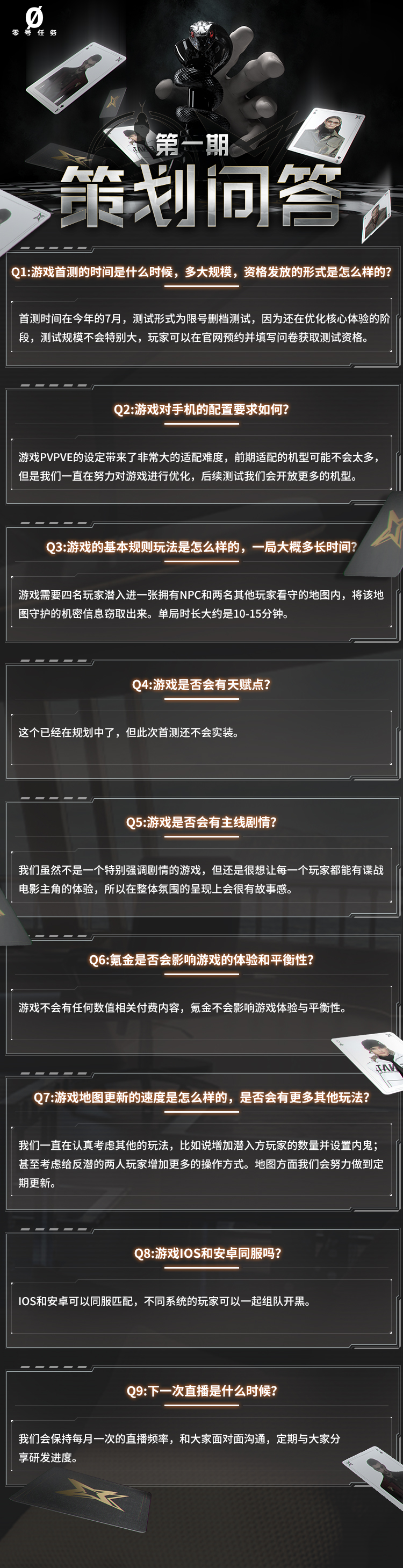 5月21日,《零号任务》制作组进行了首次“策划面对面”直播活动,策划和营销同学在直播中向玩家们展示了游戏实际操作的部分画面,并透露了与首测息息相关的新情报。除此之外,还解答了玩家们迫切关心的众多问题,其中包含了不少关键信息。