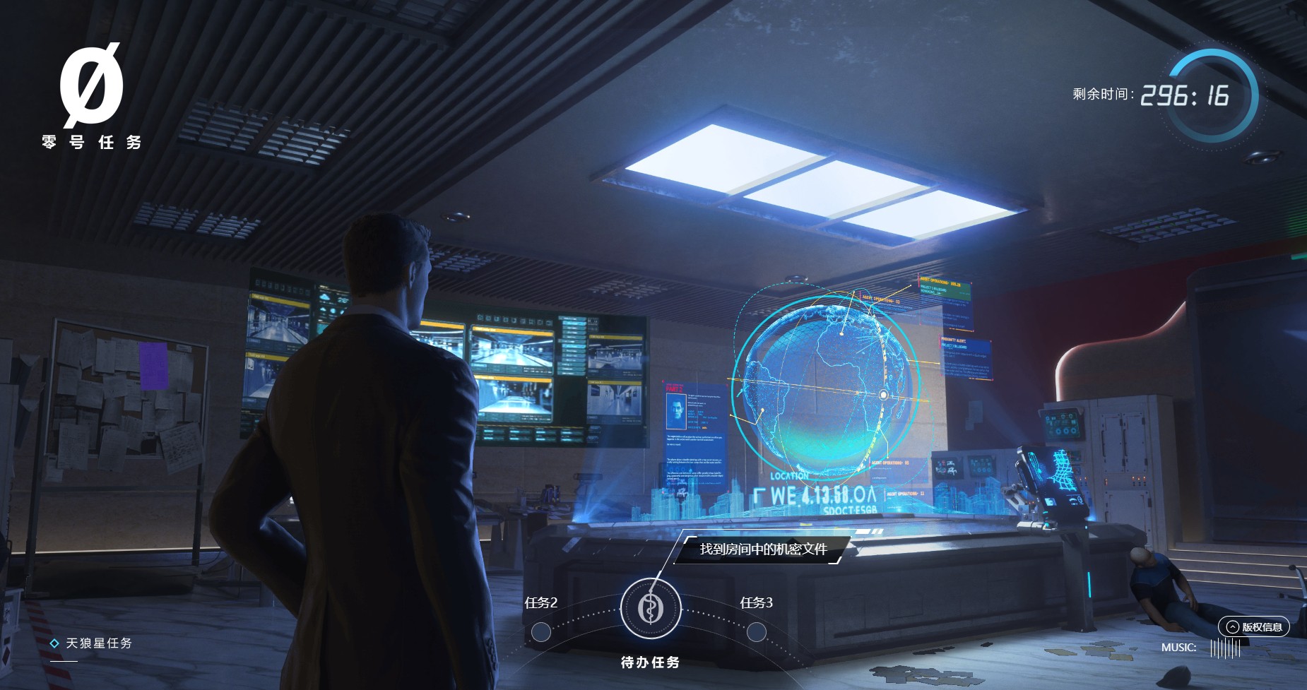 扮演【天狼星】的探员进入悬念站,你身在机密房间中,被击倒的敌方人员瘫软于一旁。面对场景中的布置,你需要逐一细致查看,寻找隐藏在场景中的机密线索,破解情报获取密码。为了不被发现,你需要穿上敌方服装更好地伪装自己,并最终安全撤离。