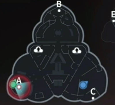 在《零号任务》前哨测试中所放出的首张地图——绿洲塔中,开局潜入与追击双方都有四个出生点可供选择。相较于潜入方,追击方的出生点都在地图外围。出生点为固定点位,选择正确的位置,可以让自己更早地接触到天狼星!