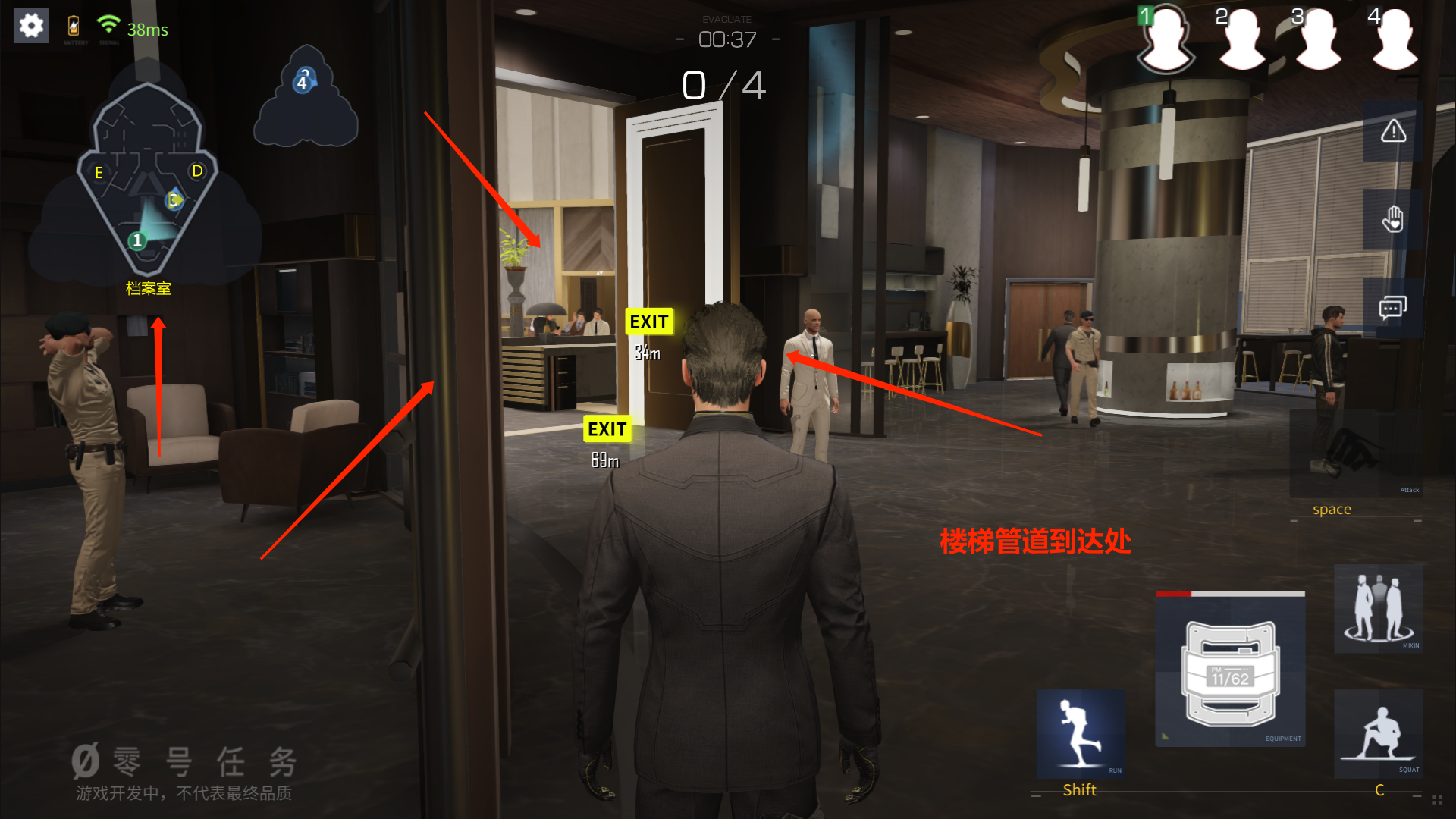 撤离过程中,基于对地图的理解,也有不少捷径可走。厨房的撤离点可以通过破译点DE下落后迅速到达。二楼的撤离点,除了周围破译点ED,也很适合走楼梯管道的探员进行撤离。