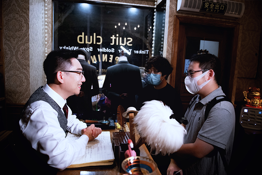昏黄的灯光,悠扬的音乐,装潢复古的西装店是神秘邀请函所提示的任务地点。通过细致探查,打开暗藏的机关,发现里面竟是一家酒吧。先遣探员们在这里先行体验了《零号任务》的最新游戏内容,互相交流、分享了游戏经验。相信这场先行演练会为探员们之后的首次任务多增添几分把握。
