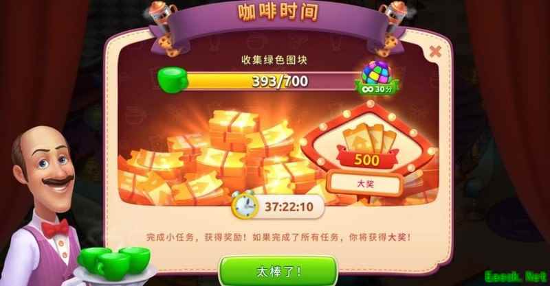 咖啡时间的玩法以收集绿色元素为核心,通过完成每一关的小任务来获取相应奖励。随着关卡推进,奖励愈发丰富,包括实用道具和装修票等。挑战过程中应重点关注绿色元素及带有特殊标识的目标,实现高效收集与任务达成双丰收。全部任务完成后,还可额外赢得500张装修票的大奖,助力更快升级。