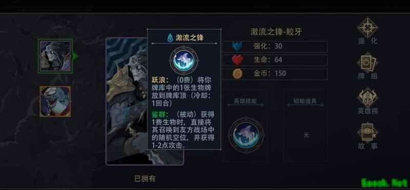 激流之主为被动技能,无需费用即可让上费随从重返战场,配合1费风精灵使用效果极佳,回手再出场时可再次触发地炎玺戒的装备效果。