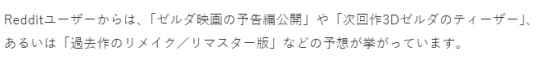 ·玩家太乱的几个策划包括“公开塞尔达电影的新预告?”、“全新3D塞尔达大作的预告?”、“经典塞尔达游戏的重制版?”等等。