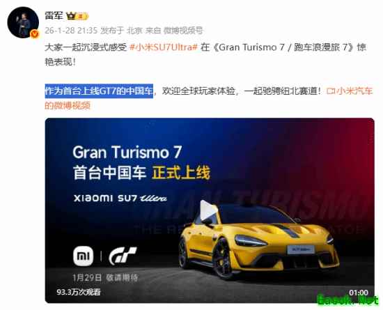 小米集团董事长雷军第一时间转发该动态,并称 “GT7中的Ultra,确实很帅!” 。