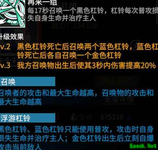 周期性召唤生物攻击敌人并治疗主人,召唤物死亡时分裂出新个体,持续至自爆;每次召唤物生成时,短暂提升其伤害输出。