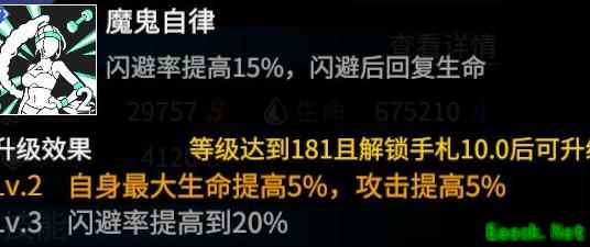 有概率闪避攻击并回复生命,提升最大生命值与攻击力的一定百分比。