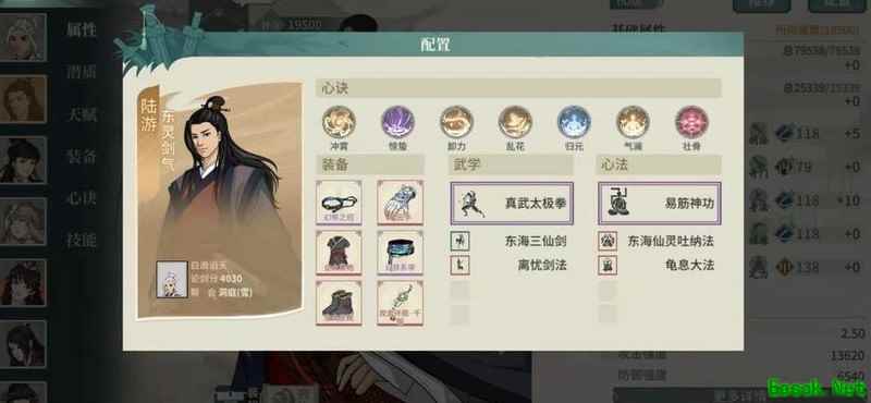 太极拳陆游搭配13段,主洗系带提升根骨、眩晕抗性、减爆伤与技能威力,观音环佩侧重命中、封穴和内伤。其余装备以生存属性为主,凭借太极拳与心法实现真气外放输出,持续占场即能打出可观伤害,配合龟息功,在人群中也能稳稳立足。