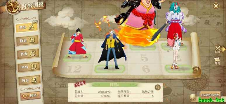 这套搭配主要适用于单体悬赏任务,和之国路飞需配置3个主动技能加单体奥义,使用时务必关闭奥义延展功能。