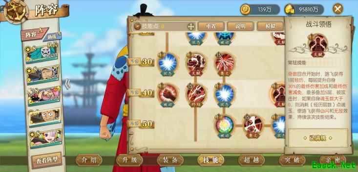 该天赋主要与战斗领悟配合,确保每次行动前后都有足够魂玉和怒气。由于和之国路飞进入奥义延展后仅保留奥义技能,此天赋可让其直接释放奥义技。