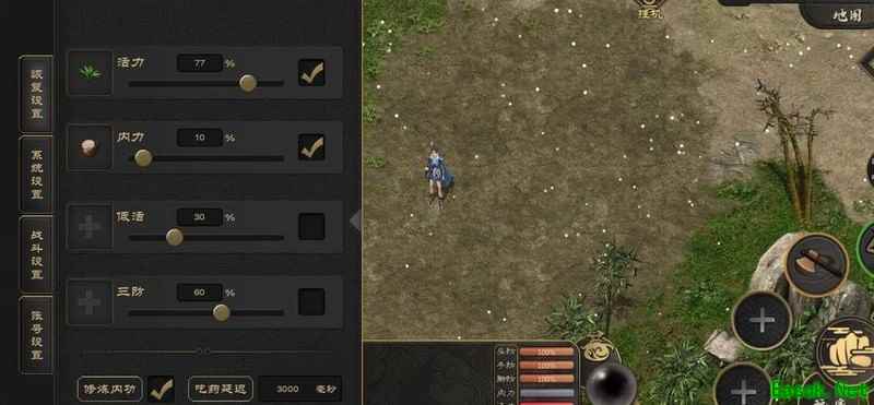 恢复设置功能可高效节省药品并快速补充角色状态。例如,将活力设为70%时使用生药,意味着当活力值低于70%便会自动用药。若吃药延迟设定为1000毫秒,系统将每隔一秒检测一次活力值,一旦低于设定阈值即触发自动使用。该机制操作简便、响应及时。此外,在修炼三攻选项中勾选相关设置后,可提升内功上限。具体表现为:当内功消耗至不足10%,随后在补满的过程中,角色的最大内功值将逐步增加。值得注意的是,角色的呐喊等级由活力与内功总和决定,因此合理配置恢复参数不仅有助于维持战斗续航,还能间接增强整体实力。