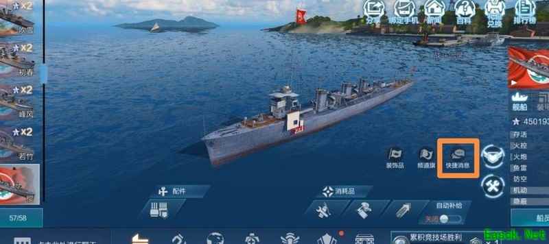 下方提供十条快捷消息,点击即可发送。可在港口界面的快捷消息设置中进行自定义配置。