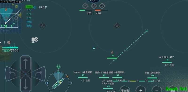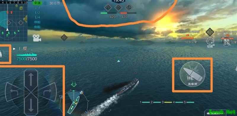小地图右侧为航速表,显示当前设定航速与实时航行速度。